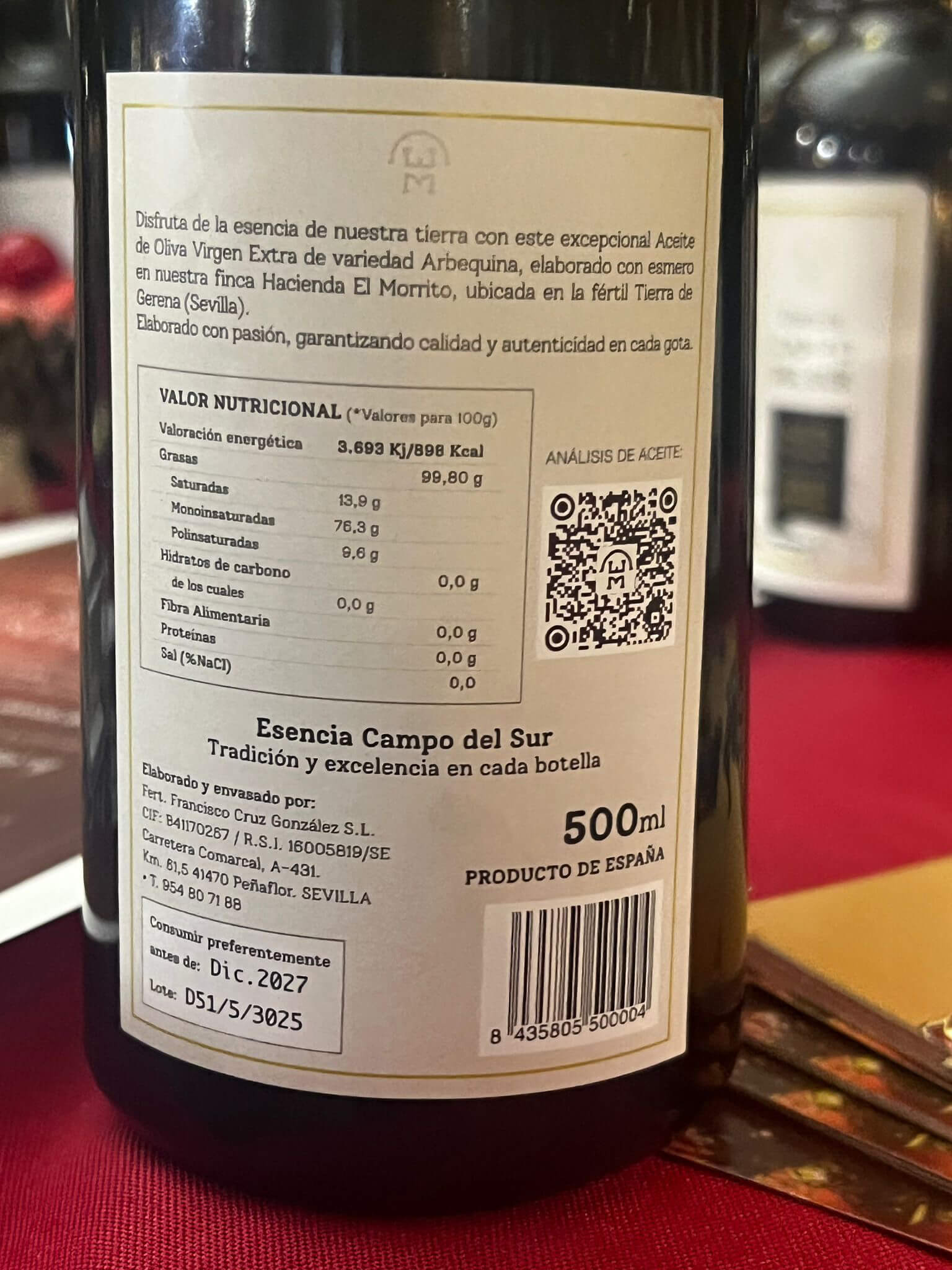 Botella de 500 ml Aceite de Oliva Virgen Extra Esencia Campo del Sur